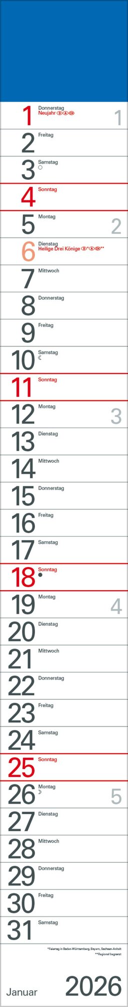Streifenplaner Blau 2026 (německy)