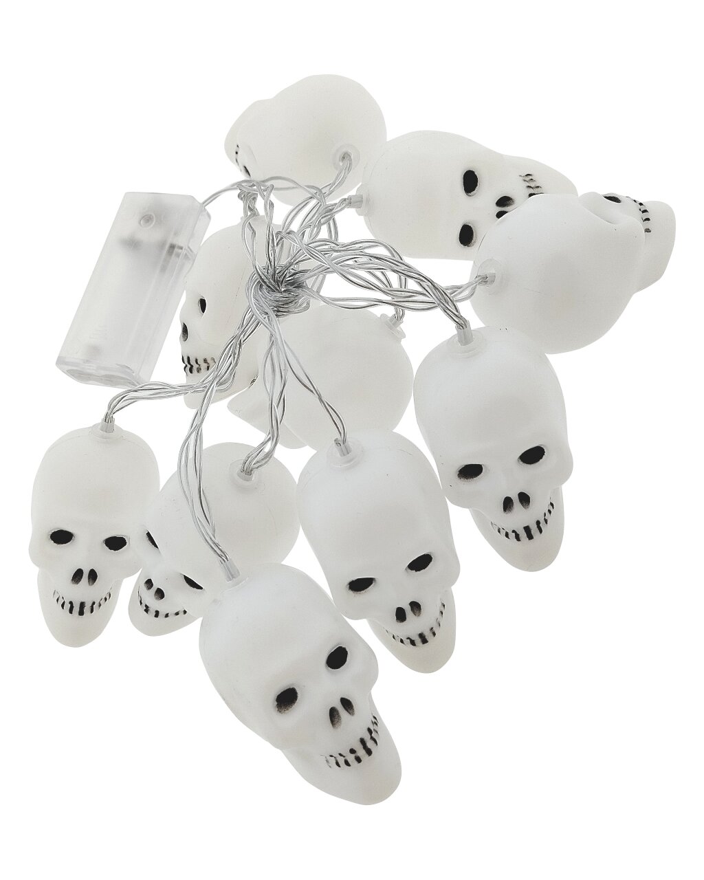 Zdroj světla: LEDPočet LED: 10 ksBarva světla: teplá bílá 2700KMateriál: plastNapájení: 2x AA 1,5V (nejsou součástí)Rozteč žárovek: 15cmPřívodní kabel: 30cmCelková délka: 165cmFunkce: ON/OFFRozměr světýlka - lebky: cca 65x45mm