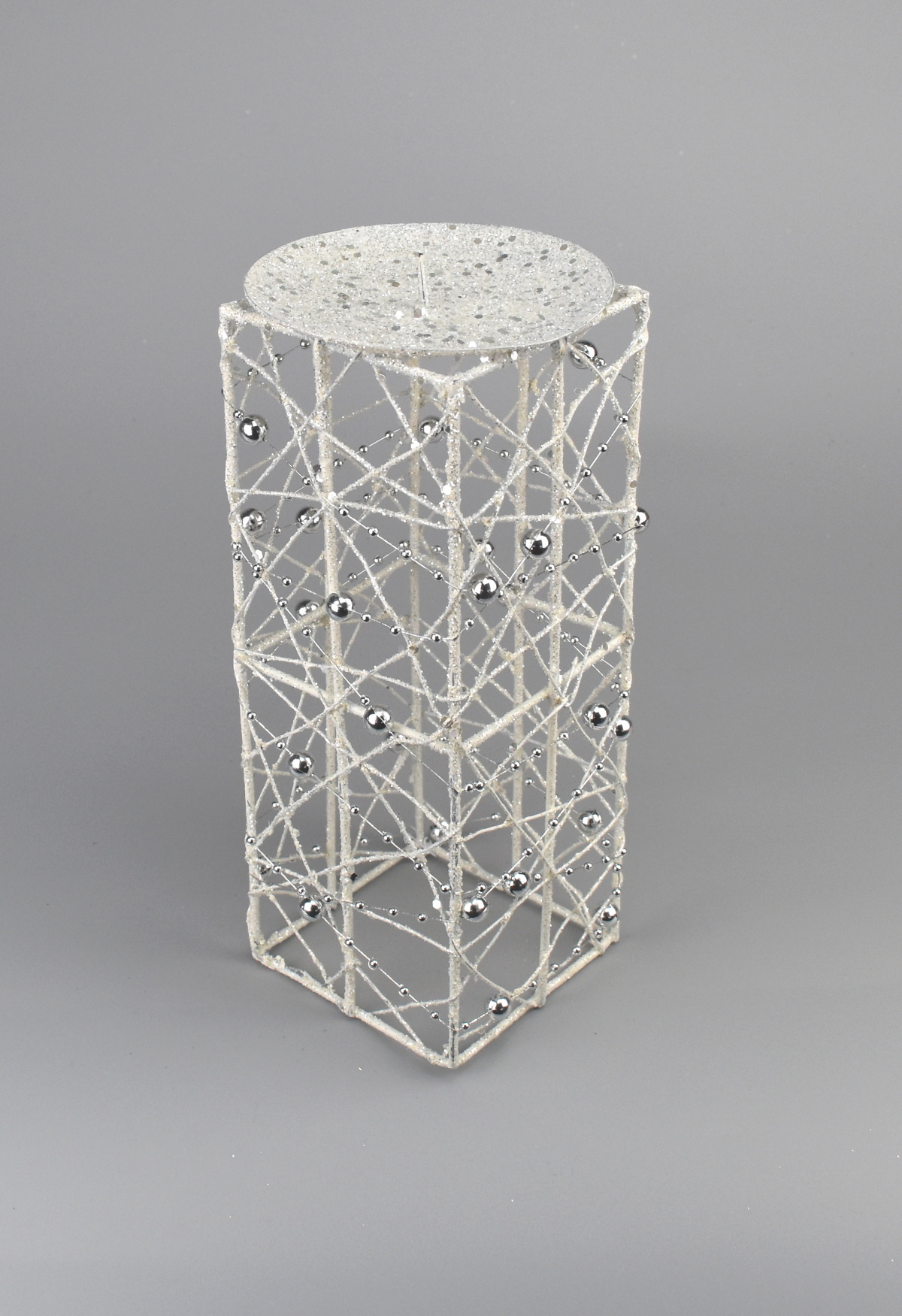 Drátěný svícen s perličkami a gliterem, barva bílá. číst celé