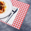 - Elegantní červený vzor Karo, který doladí každou slavnostní tabuli