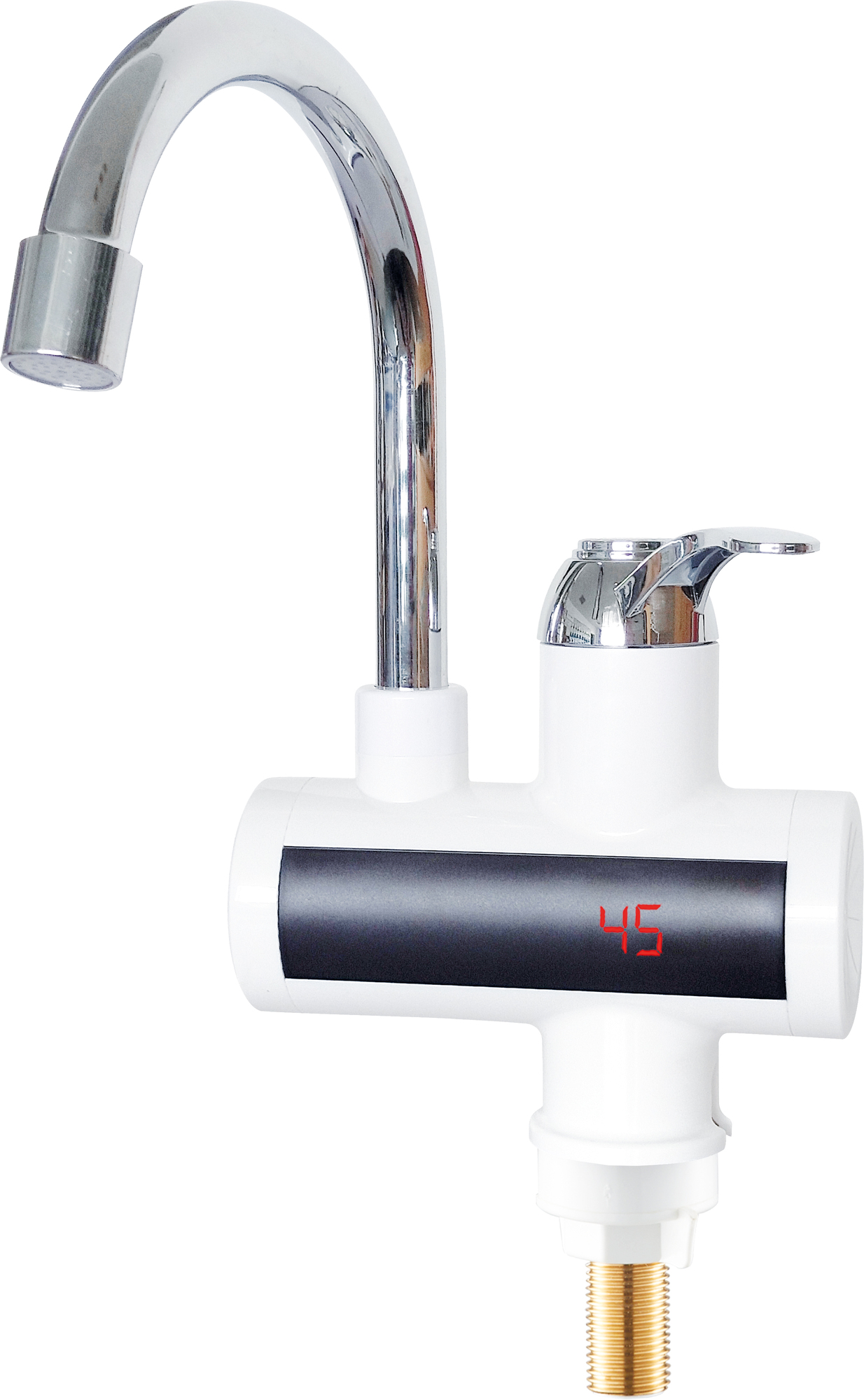 Ohřívač se ovládá pomocí praktického regulačního knoflíku, přičemž na displeji se zobrazuje aktuální teplota vody. Použití je naprosto bezpečné a pohodlné - není potřeba žádné dodatečné vedení trubek ani nákladné montáže. Skvělý pomocník pro kuchyň, koupelnu nebo rekreační objekty.