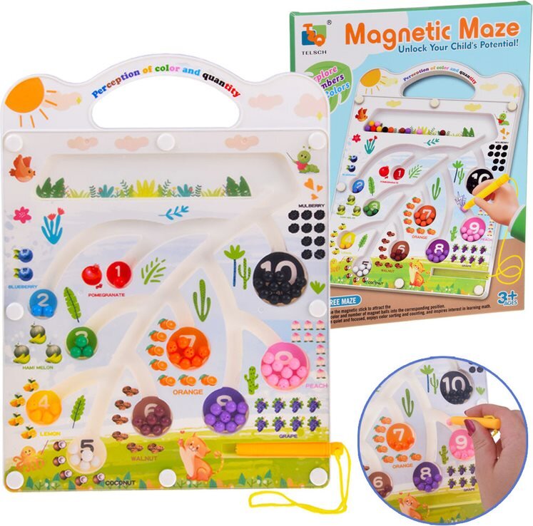 Jak se hraje? Úkolem dítěte je pomocí speciálního magnetického pera navádět kuličky do správných otvorů.