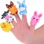 Obsah balení: 5 gumových maňásků na prsty - zvířátka z farmy (králík, kráva, pes, kachna, osel). Rozměry každého maňáska: cca 5 × 4 × 4 cm.