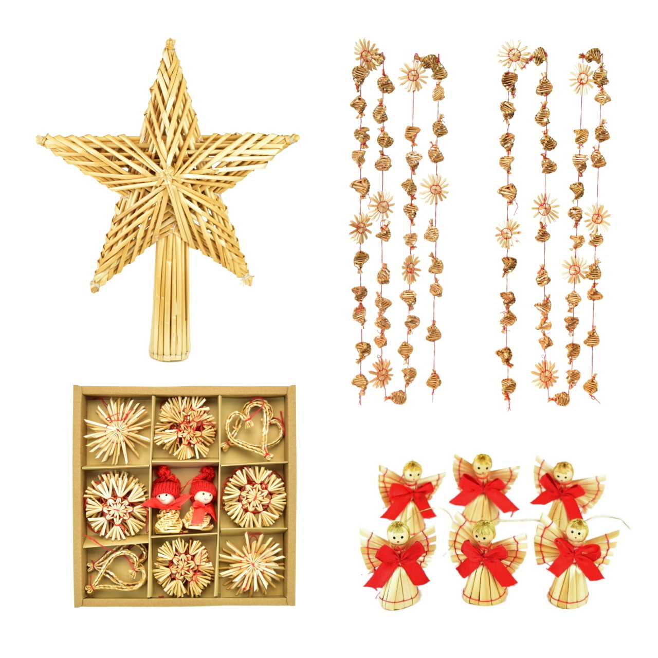 Slaměná špiška, 2 ks řetěvy, 6 ks andělíčci, slaměné ozdoby 30 ks