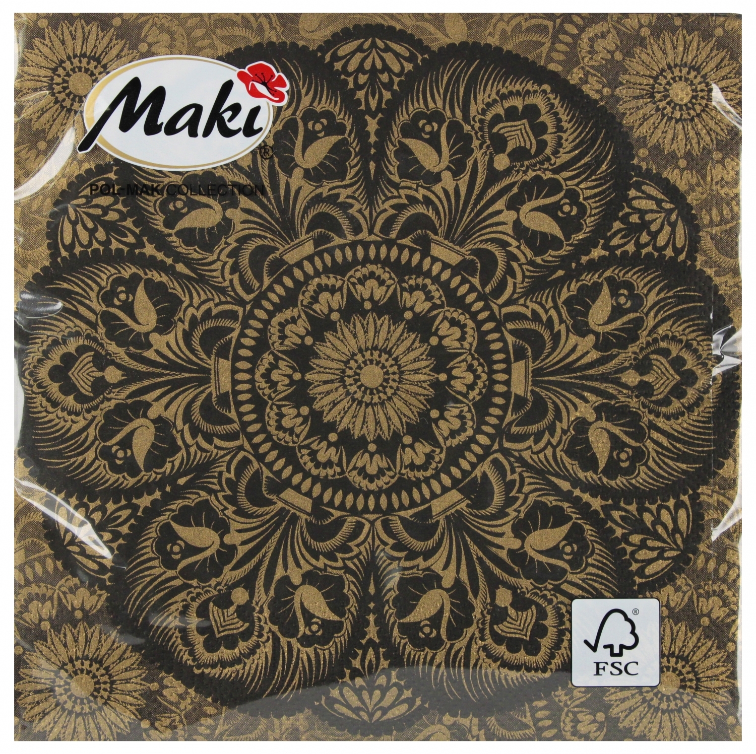 Serwetka papierowa 3 warstwowa 33x33 cm Łowicz czarno-złoty op.20 szt. POL-MAK SLOG058502