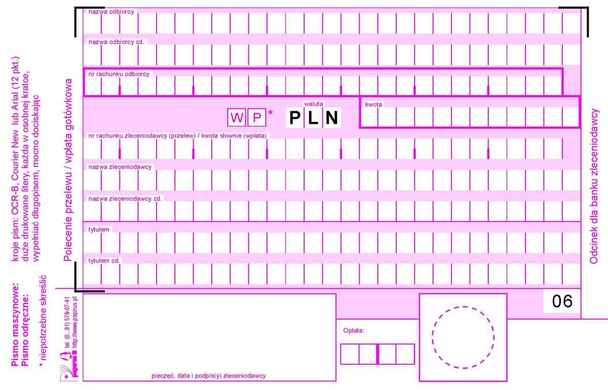 Polecenie przelewu/wpłata gotówkowa 4-składka 100 kart A6