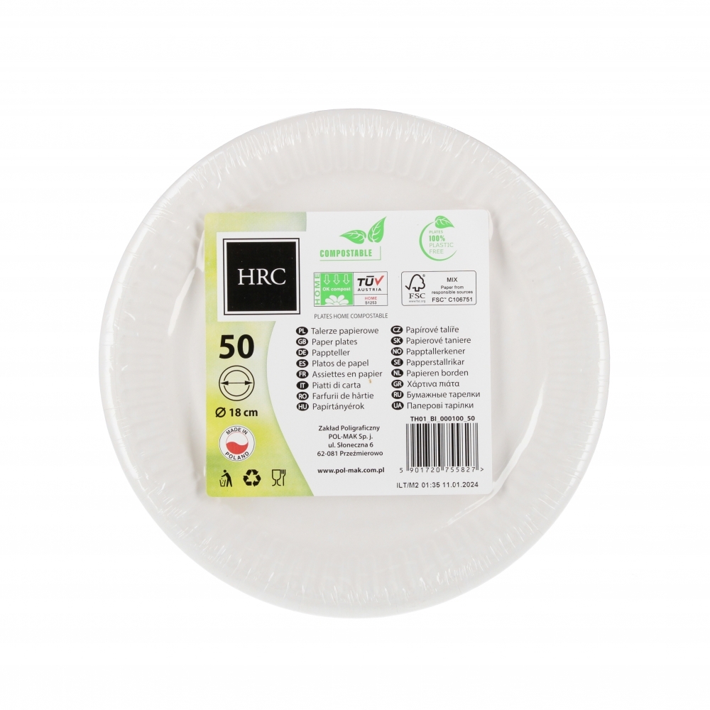 Talerz papierowy 18 cm biały op.50 szt. POL-MAK TH01 B1