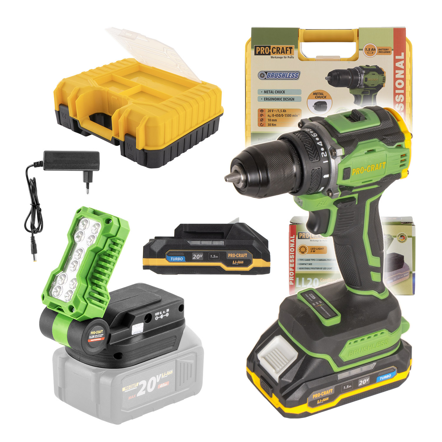 Aku šroubovák Procraft PA18Pro s LED reflektorem LL20bb | SPA18Pro/LL20