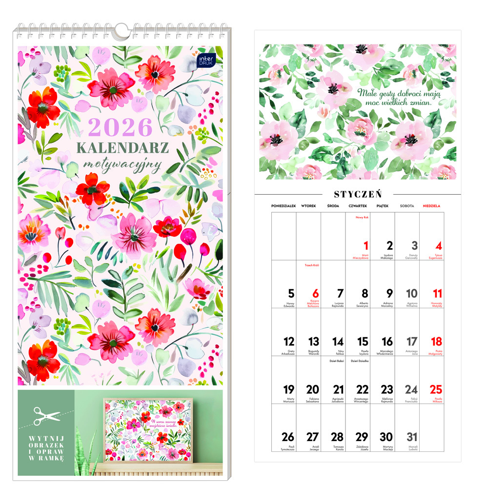 Kalendarz 220x460 motywacyjny miesiąc Kwiaty Interdruk