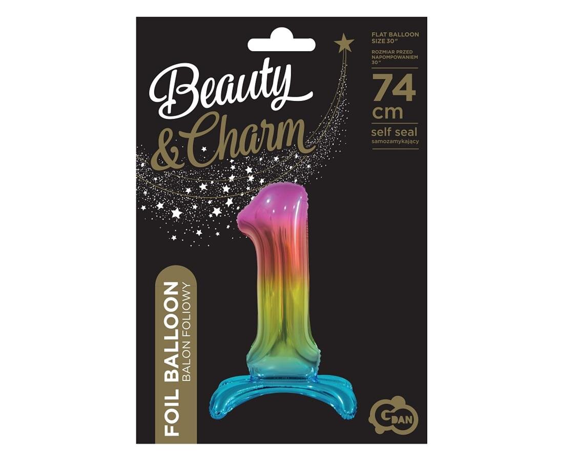 BALON FOLIOWY CYFRA 74 CM TĘCZA 1 STOJĄCY GO PBH