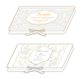 Pudełka na banknoty z kokardką 165 x 85 x 17 mm Prezent z okazji Chrztu ŚwiętegoSatynowy lakier wybiórczy, ozdobne tłoczeniaKompozycje i napisy ze złotej folii lub srebrnej foliiW środku wydrukowany tekst życzeńOpakowanie 1 szt.