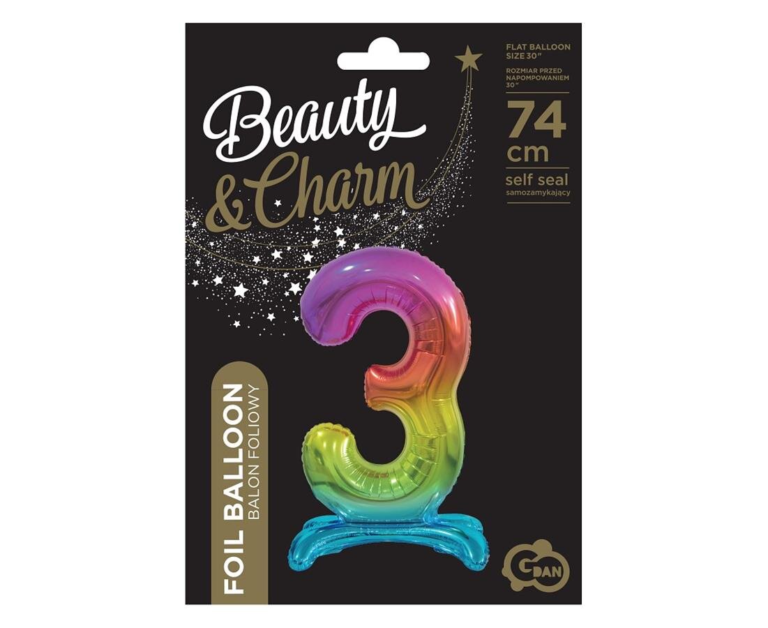 BALON FOLIOWY CYFRA 74 CM TĘCZA 3 STOJĄCY GO PBH
