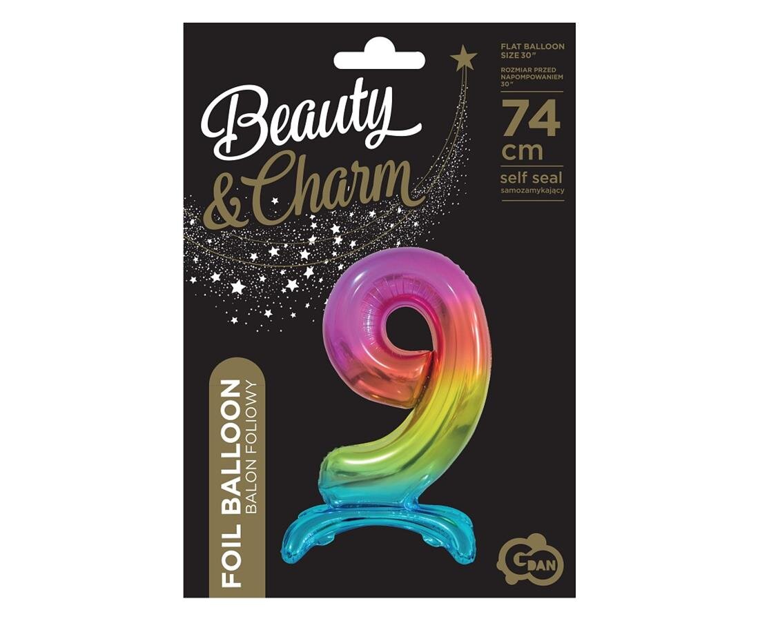 BALON FOLIOWY CYFRA 74 CM TĘCZA 9 STOJĄCY GO PBH