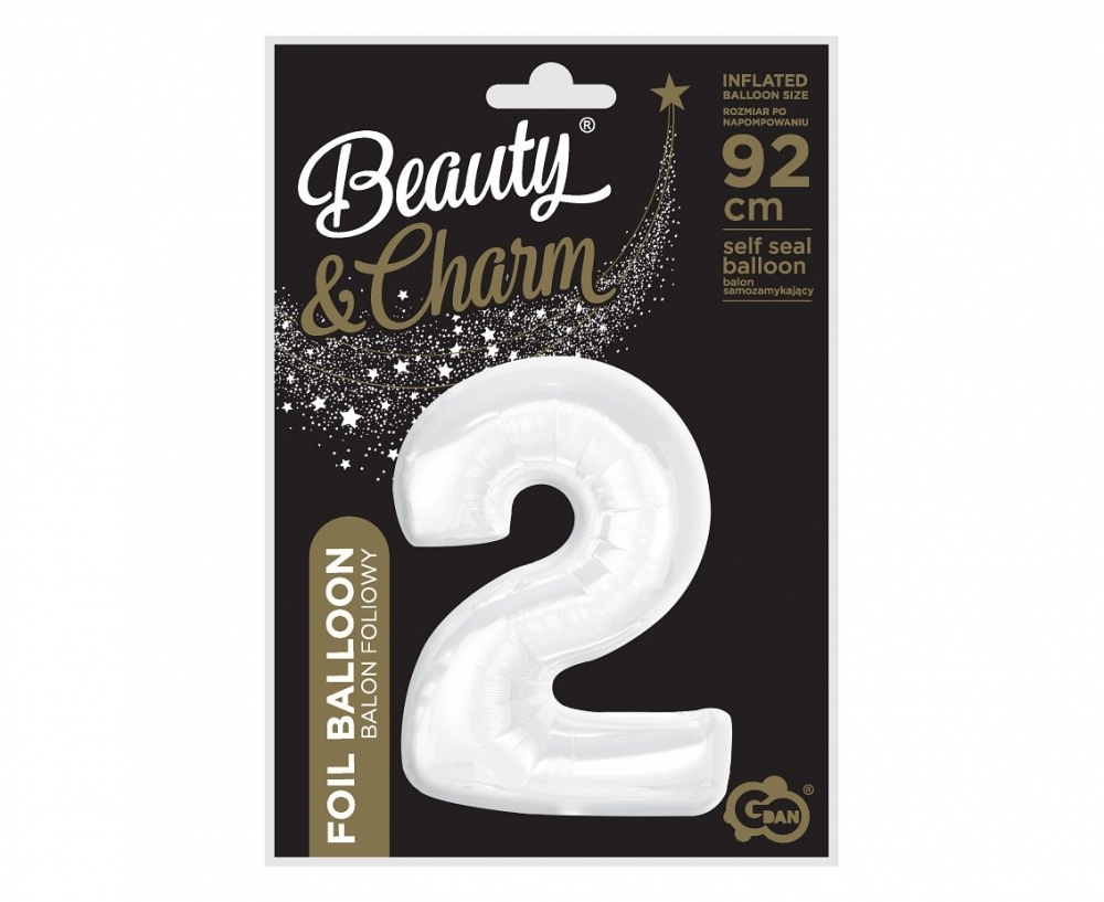 Balon foliowy 92 cm cyfra 2 biały Party GODAN CH-B9B2