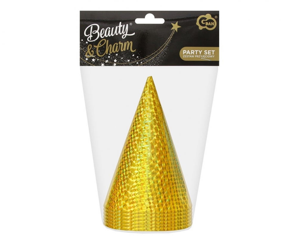 Czapeczka karnawałowa holograficzna złota op.6 szt. Party GODAN GP-CHZT