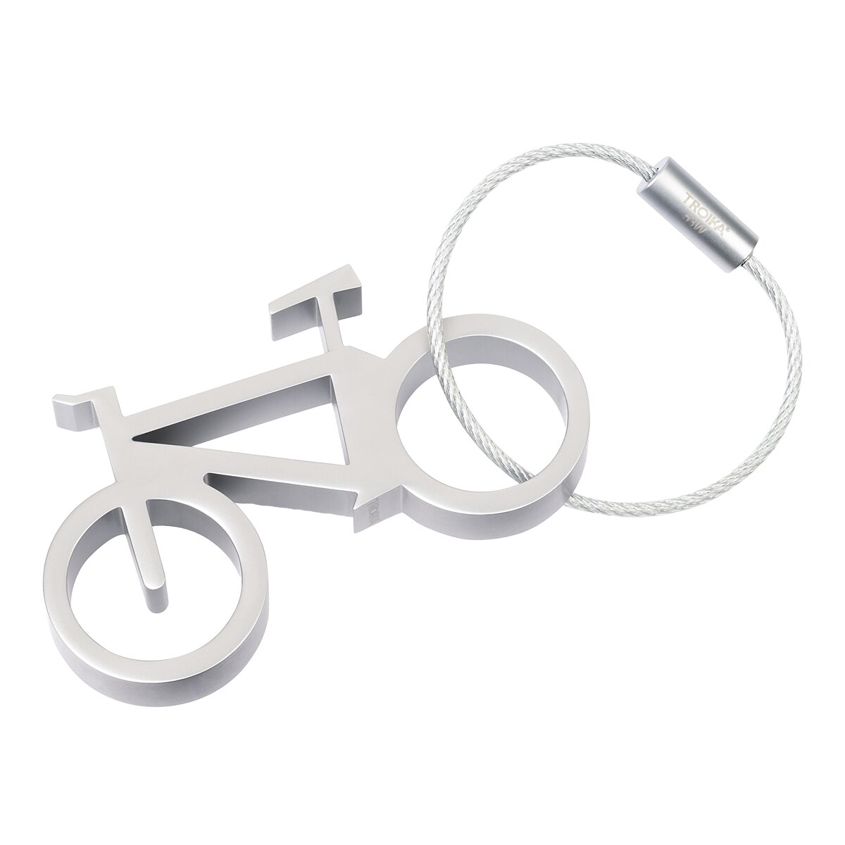 TROIKA klíčenka a otevírák lahví - kolo, kovová, stříbrná