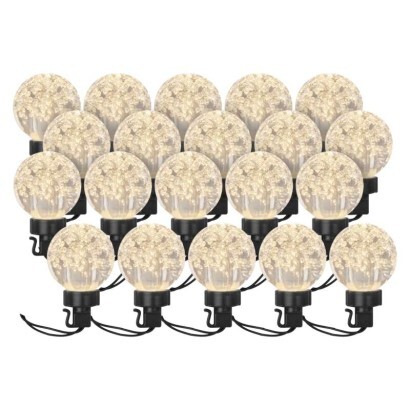 LED světelný řetěz – 20x párty žárovky, 7,6 m, venkovní i vnitřní, teplá bílá