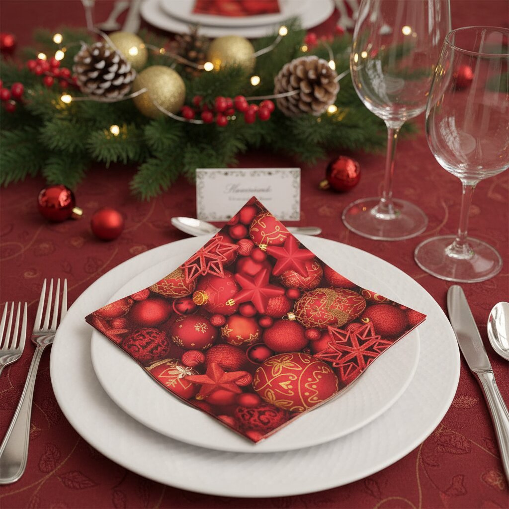 Vánoční dekorativní papírový ubrousek ČERVENÉ OZDOBY 33x33 cm balení 20 ks