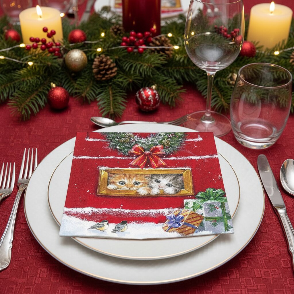 Vánoční dekorativní papírový ubrousek KOŤATA 33x33 cm balení 20 ks