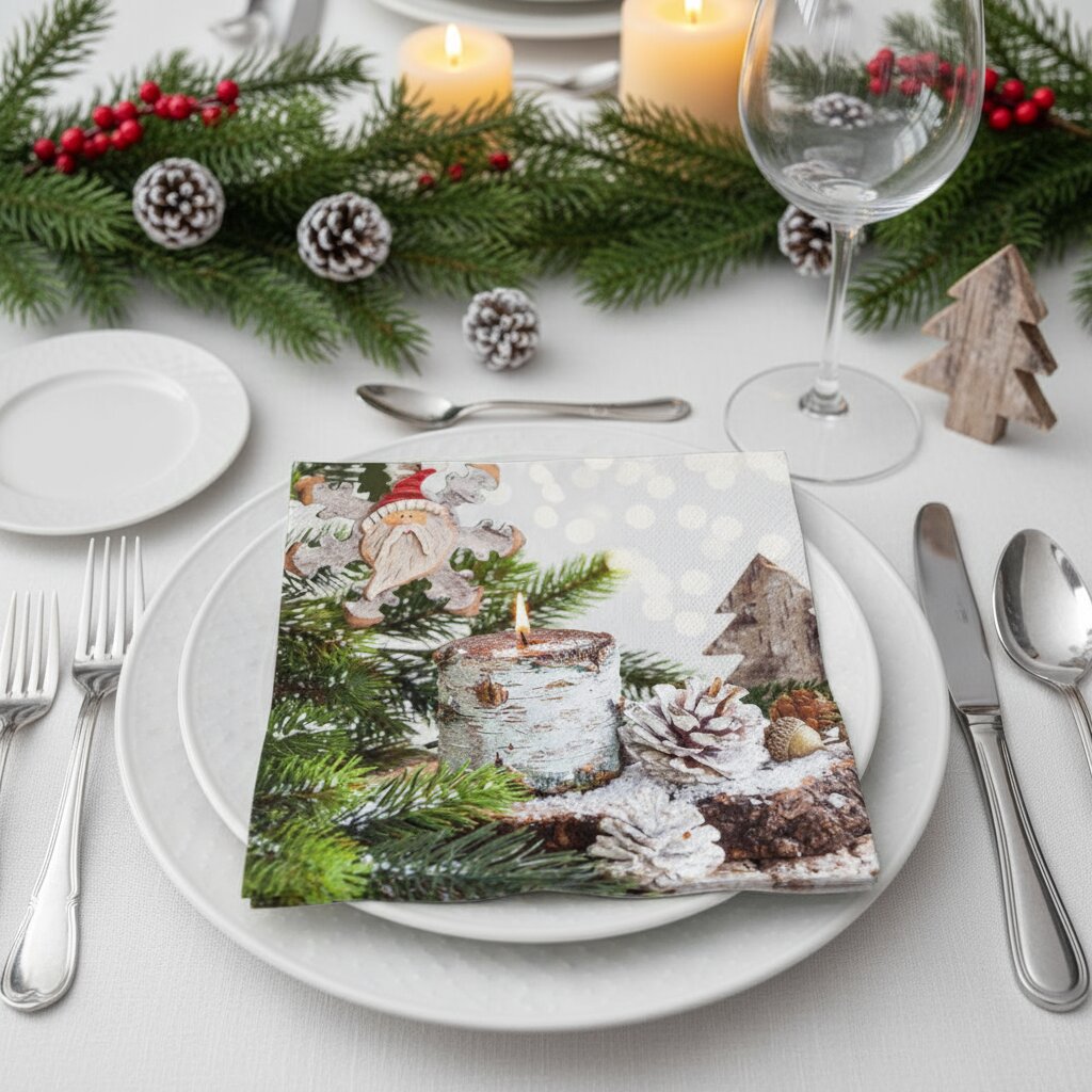 Vánoční dekorativní papírový ubrousek BŘEZOVÁ SVÍČKA 33x33 cm balení 20 ks
