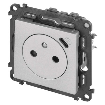 barva: hliníkdesign: Valena Lifekrytí: IP20napětí: 250 V~podsvětlení: neprodejní obal: 1 ksprodukt: zásuvka jednonásobná s ochranným kolíkem a USB-C nabíječkouproud: 16 Aprovedení: FRENCH, USB-C 5 V DC 1,5 A/7,5 Wtyp připojení: automatická svorkaznačka: LEGRANDzpůsob montáže: do krabice