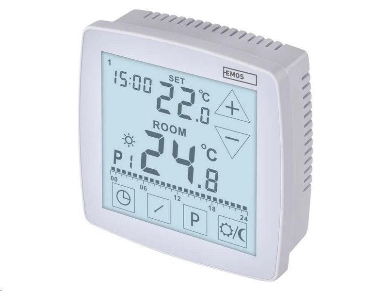 Chytrá regulace teploty s EMOS P56A01. Tento programovatelný pokojový termostat s OpenTherm komunikací vám zajistí pohodlí i úsporu energie. Umožňuje řídit nejen klasické topné a chladicí systémy, ale díky podlahovému čidlu (součást balení) také podlahové vytápění.