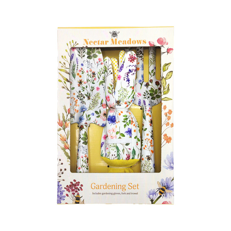 Sada zahradního nářadí -3 ks-Lopatka,vidlice,rukavice-Luční nektar-Včela-Meadows
