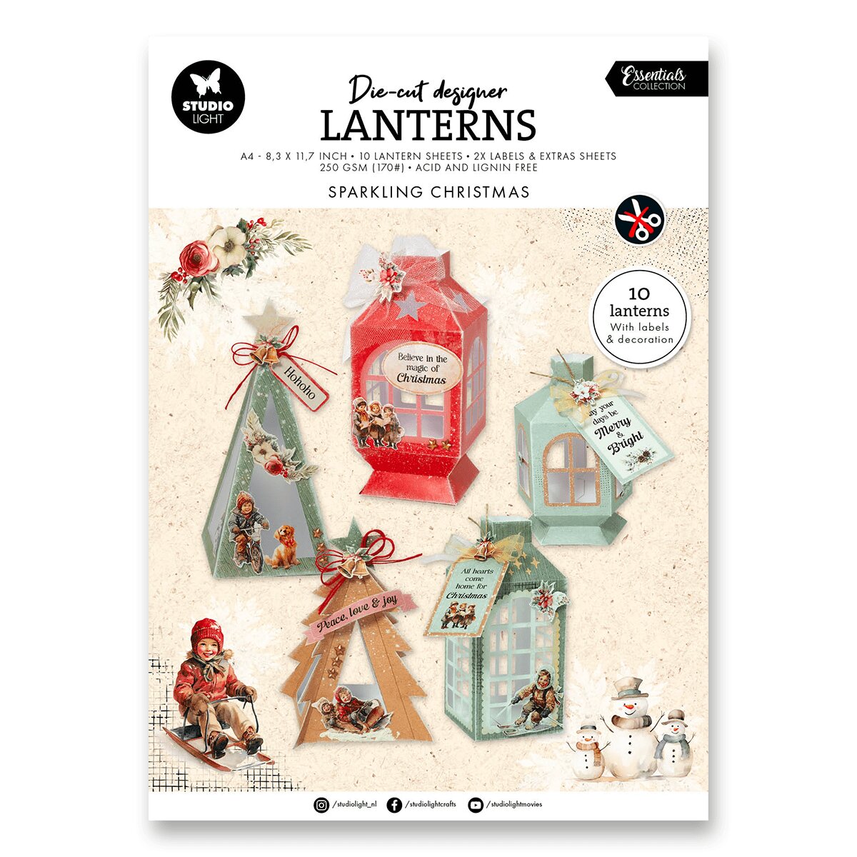 Kreativní blok k sestavení 10 trojrozměrných lucerniček. Pláštíky luceren, dekorativní prvky a visačky se nemusí vystřihovat - mají perforované okraje, takže je stačí ze stránky bloku vyloupnout a poskládat podle narýhovaných čar. Potřebovat budete jenom tekuté lepidlo nebo lepicí pásku. Do okének můžete nalepit pergamenový papír a dovnitř umístit LED svíčky či vánoční světélka. Hotové lucerničky budou vypadat krásně vystavená na okenním parapetu, zavěšené na girlandě a budou také originálním vánočním dárkem.
