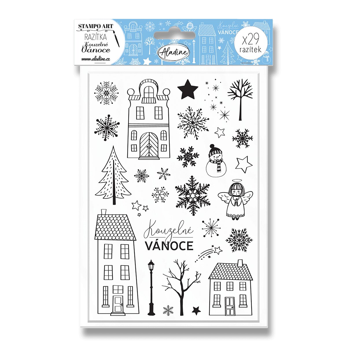 Originální gumová razítka s motivy domečků a sněhových vloček. Hodí se pro razítkování na papír k výrobě vánočních přání, obálek a visaček na dárky, ale jsou vhodné i na dřevo, látky a další povrchy. Vybrané razítko stačí vyloupnout z pěnové desky a namočit do razítkovacího polštářku - doporučujeme rychleschnoucí razítkovací polštářky Aladine Izink Quick Dry.