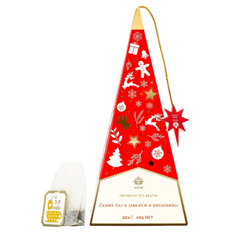 20 čajových sáčků s výborným černým čajem ze Srí Lanky ochuceným jablkem a brusinkou zabaleno v krásné designové pyramidě s vánočním motivem. Složení: Černý čaj 94%, brusinková příchuť 3%, jablečná příchuť 3%.