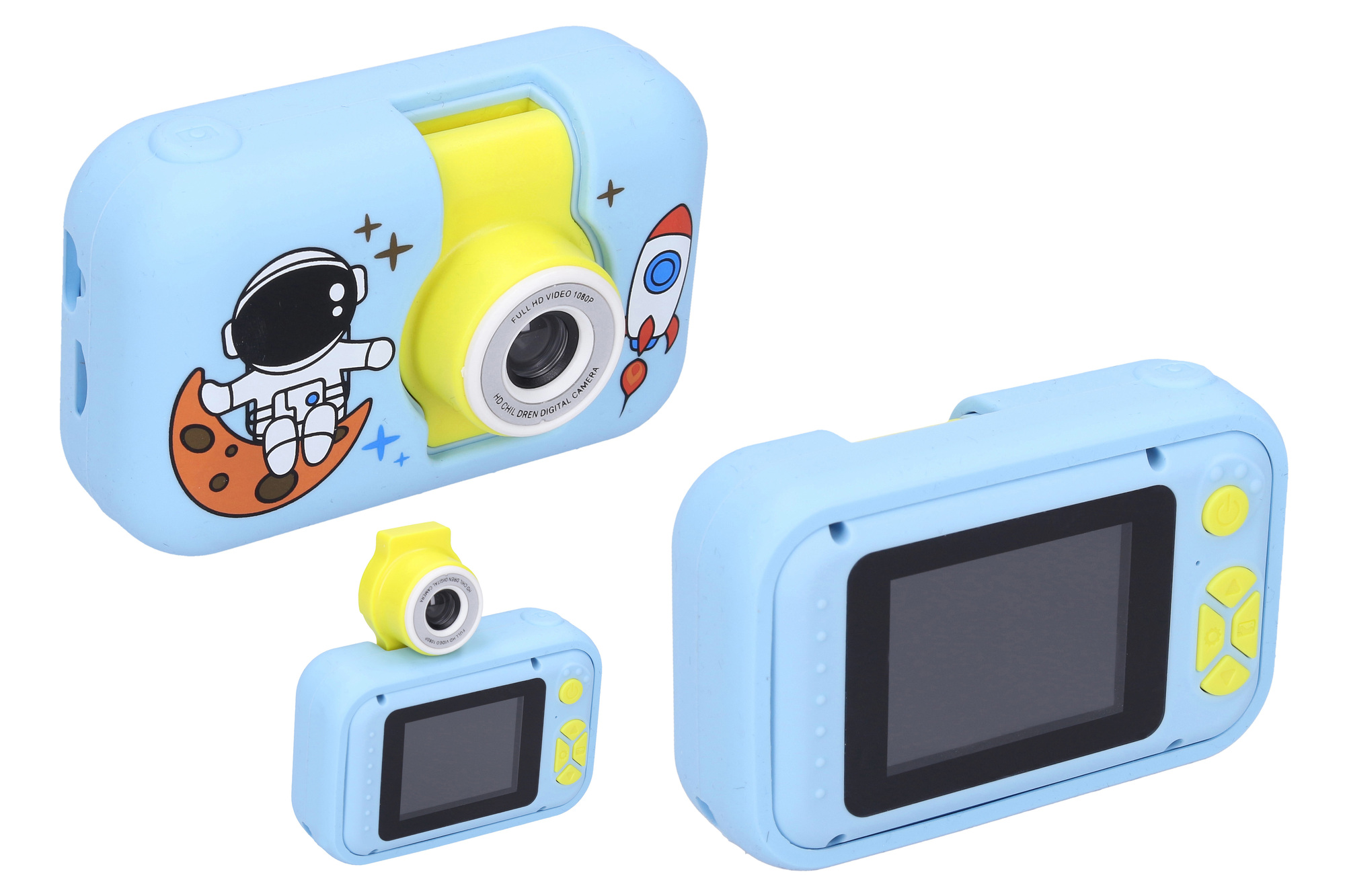 Dětský digitální fotoaparát výklopný objektiv silikonové pouzdro - foto 40Mpx, video Full HD. Rozměry 9,6x4,2x6,3 cm. Silikonové pouzdro součástí. Rozlišení fotografií 40 megapixelů, videa Full HD (1920x1080). Výklopný objektiv pro selfie foto, časovač 10s/5s/2s, vložení času, 4x digitální zoom, různé efekty (rámečky, vložené animace, deformace, filtry) fotografií, hry, mp3 přehrávač, 2,0 palcový displej. Vestavěná 400mAh Li-ion baterie, USB-C kabel a popruh součástí. Formát fotografií jpg, vide
