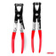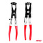 Sada kleští na stahovací pásky, která zaručuje pohodlí při práci v autoservisu nebo domácí dílně. Všechny prvky jsou vyrobeny z vysoce kvalitních materiálů. Kleště s rotačními čelistmi pasují na většinu typů pružinových stahovacích pásek, rotační čelisti vroubkované pro dobré držení velkých i malých svorek v libovolném úhlu. Západkový zámek pro držení čelistí v 5 různých polohách. Zámek umožňuje bezpečně držet napnutý pásek.