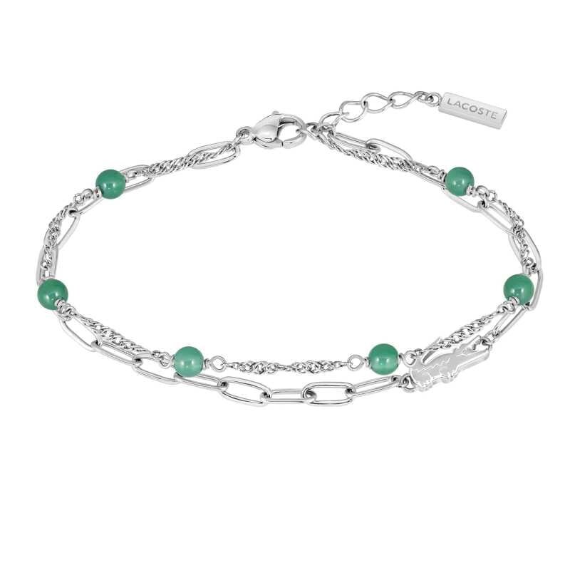 Dámský ocelový náramek se zelenými korálky Deva 2040457 Lacoste