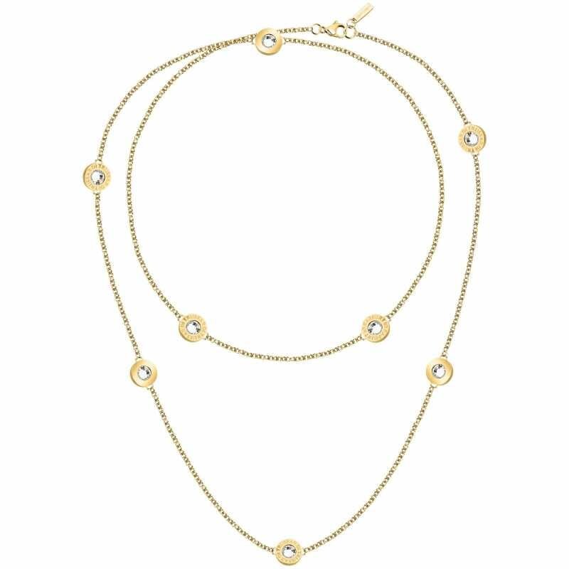Elegantní dámský náhrdelník značky Trussardi je vyroben z kvalitní oceli s precizním zlatým PVD pokovením. S délkou 90 cm a třpytivými čirými krystaly se stává skvělým doplňkem pro každou příležitost. Vygravírovaný název značky podtrhuje jeho luxusní vzhled. Díky jednoduchému zapínání na karabinku je nošení pohodlné a stylové. Tento moderní šperk dokonale doladí váš outfit a dodá mu šmrnc.