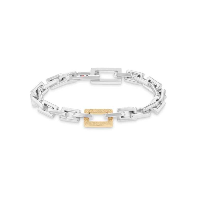 Dámský náramek značky Tommy Hilfiger je dokonalým spojením elegance a stylu. Vyrobený z kvalitní oceli, vyniká výrazným designem, který upoutá pozornost. Jeden z článků je precizně ošetřen zlatým PVD povlakem a zdoben ikonickými logy značky. Délka 18 cm a praktické zapínání na karabinku zajišťují pohodlné nošení. Oživte svůj outfit tímto módním kouskem a nechte se unést jeho jedinečným kouzlem.