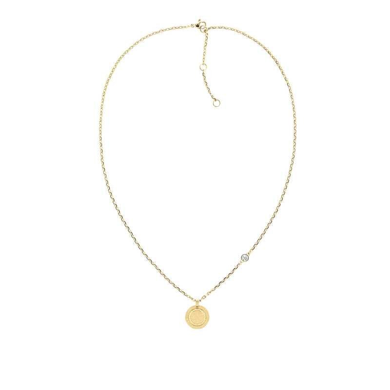Elegantní dámský náhrdelník značky Tommy Hilfiger, vyrobený z kvalitní oceli a pozlacený žlutým zlatem, přináší do vašeho šperkovníku nádech luxusu. Jeho kulatý přívěsek oslnivě třpytí, zatímco jemný detail s čirým krystalem na řetízku dodává šarm. S délkou 46 cm a možností prodloužení o 5 cm se skvěle přizpůsobí každému outfitu. Zapínání na karabinku zajišťuje pohodlné nošení, což z něj činí ideální módní doplněk pro každou příležitost.