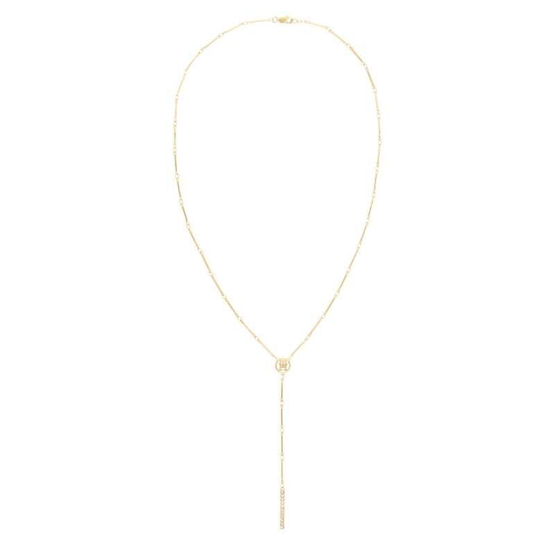Elegantní dámský náhrdelník značky Tommy Hilfiger, vyrobený z kvalitní oceli a pokrytý zlatým PVD povlakem, přináší jedinečný design ve tvaru "Y". Vyniká dekorativním logem TH v kroužku a drobnými čirými krystaly na konci řetízku. S délkou 55,8 cm a praktickým zapínáním na karabinku se stává skvělým doplňkem pro každou příležitost. Oživte svůj outfit elegantním šperkem, který podtrhne vaši osobnost.