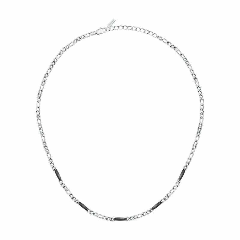 Elegantní náhrdelník značky Trussardi představuje dokonalou kombinaci stylu a kvality. Vyrobený z prvotřídní oceli a částečně pokrytý černým PVD povlakem, dodává každému outfitu jedinečný šarm. Délka 45 cm s možností prodloužení o 5 cm zajišťuje ideální přizpůsobení, zatímco bezpečnostní zapínání na karabinku chrání před ztrátou. Tento moderní šperk je skvělou volbou pro každou příležitost.