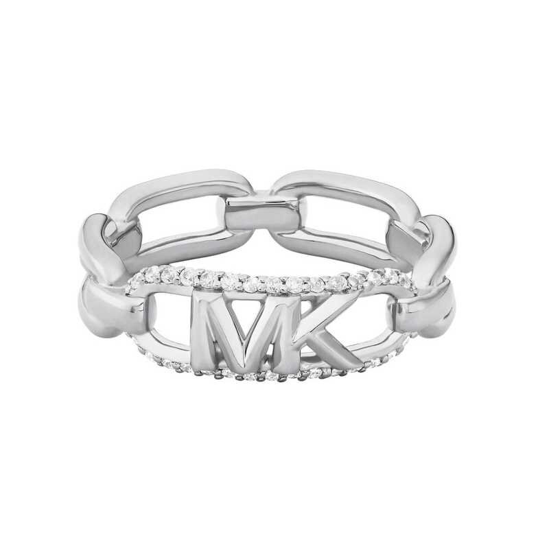 Elegantní dámský prsten značky Michael Kors přináší spojení kvalitního stříbra a moderního designu. Rhodiovaný povrch nejen zajišťuje dlouhotrvající lesk, ale také minimalizuje riziko alergických reakcí. Stylový článkový design doplňují třpytivé kubické zirkony, které přitahují pozornost. Ikonické logo "MK" podtrhuje exkluzivitu tohoto šperku. Vytvořte si nezapomenutelný dojem s tímto jedinečným doplňkem.