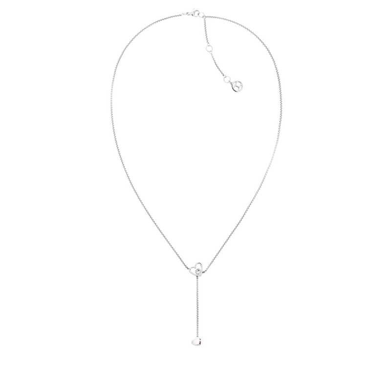 Elegantní dámský náhrdelník značky Tommy Hilfiger z kvalitní oceli přináší jedinečný design ve tvaru "Y" s půvabnými srdíčky. Větší srdíčko je ozdobeno drobným čirým krystalem, který přidává nádech luxusu. S délkou 46 cm a možností prodloužení o 5 cm se skvěle přizpůsobí každému outfitu. Zapínání na karabinku zajišťuje pohodlné nošení. Tento šperk je ideálním způsobem, jak podtrhnout váš osobní styl.