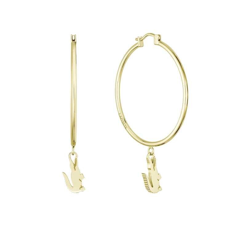 Nadčasové pozlacené kruhy s přívěsky krokodýla 2040376 Lacoste