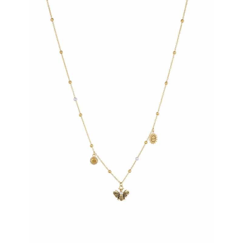 Elegantní dámský náhrdelník značky Liu.Jo spojuje kvalitní ocel s pozlacením žlutým zlatem, což mu dodává luxusní vzhled. Hravý design včelky a květiny je doplněn syntetickými perličkami, které přitahují pozornost. S délkou 45 cm a praktickým zapínáním na karabinku je tento šperk ideálním módním doplňkem pro každou příležitost. Objevte kouzlo perlových šperků, které obohatí vaši šperkovnici.