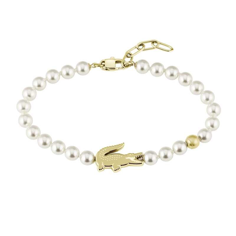 Elegantní náramek od značky Lacoste je dokonalým doplňkem pro každou ženu, která ocení styl a kvalitu. Je vyroben z krásných syntetických perel a ozdoben ocelovými komponenty s luxusním zlatým PVD pokovením. Ikonický krokodýl dodává šperku jedinečný šarm, zatímco pevné zapínání na karabinu zajišťuje bezpečné nošení. Přidejte do svého outfitu nádech elegance s tímto půvabným kouskem.