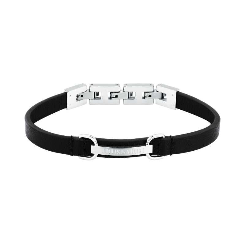 Pánský náramek z černé kůže T-Leather TJAXZ08 Trussardi
