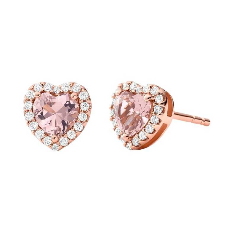 Tyto romantické náušnice značky Michael Kors představují dokonalou kombinaci elegance a vkusu. Vyrobené ze sterlingového stříbra a pozlacené 14karátovým růžovým zlatem, okouzlí tvarem srdíček, které jsou lemovány čirými kubickými zirkony. Střed srdíčka zdobí vybroušený kubický zirkon v jemném růžovém odstínu. S průměrem 0,7 cm a zapínáním na puzetku se stanou ideálním dárkem pro každou milovanou ženu.