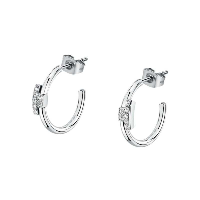 Ocelové kruhové náušnice se zirkony T-Logo TJAXC86 Trussardi