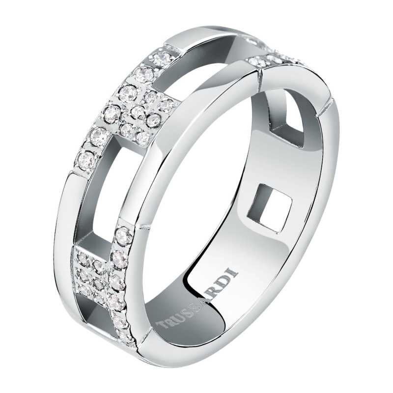 Elegantní prsten značky Trussardi je dokonalým doplňkem pro každou ženu, která ocení kvalitu a styl. Vyroben z prvotřídní oceli, tento šperk je osazen nádhernými čirými zirkony, které dodávají prstenu půvab a lesk. Nadčasový design z kolekce T-Logo zajišťuje, že se hodí k různým příležitostem. Objevte kouzlo tohoto výjimečného kousku a obohaťte svou sbírku šperků o další jedinečný prvek.