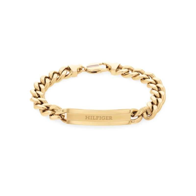 Náramek pro muže značky Tommy Hilfiger představuje spojení elegance a odolnosti. Vyroben z kvalitní oceli s luxusním zlatým PVD povlakem, zajišťuje nejen atraktivní vzhled, ale také dlouhou životnost. Nadčasový design s vyrytým názvem značky dodává šperku osobitý charakter. Bezpečnostní karabinka zaručuje pohodlné nošení. Ideální doplněk, který skvěle doplní každý outfit.