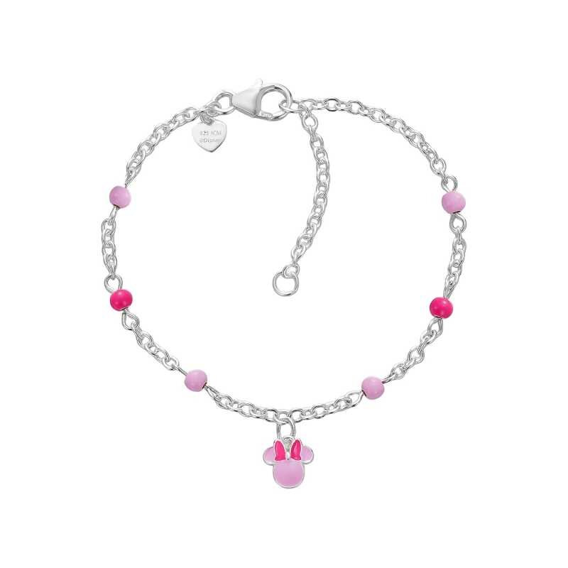 Elegantní dívčí náramek značky Disney přináší kouzlo pohádkového světa s postavičkou Minnie Mouse. Vyrobený z kvalitního stříbra a zdobený růžovým smaltem, náramek je doplněn o jemné korálky, které dodávají na atraktivitě. Délka 12 cm s možností prodloužení o 2 cm a snadné zapínání na karabinku zajišťují pohodlné nošení. Tento šperk je ideálním dárkem pro všechny malé milovnice Disney.