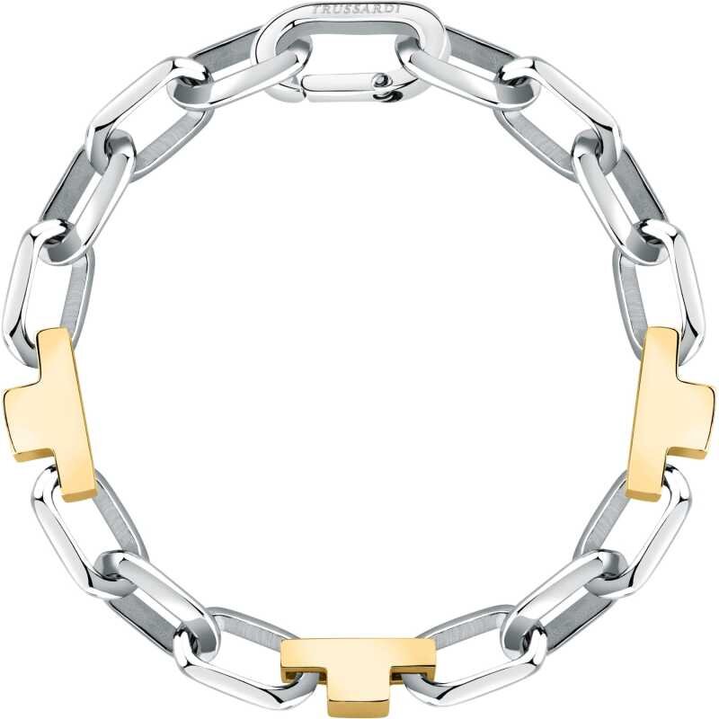 Dámský náramek Trussardi z kvalitní nerezové oceli spojuje eleganci s moderním designem. Bicolor provedení s pozlacenými články ve tvaru "T" vytváří unikátní styl, který osloví každou ženu. Délka 21 cm a praktické zapínání na karabinku zajišťují pohodlné nošení po celý den. Tento náramek je ideálním klenotem, který dodá šarm každému outfitu. Objevte kouzlo nadčasových šperků, které oslní.